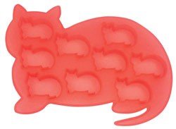 This flexible cat shaped silicone ice tray makes 9 ice cubes in the shape of a little cat.